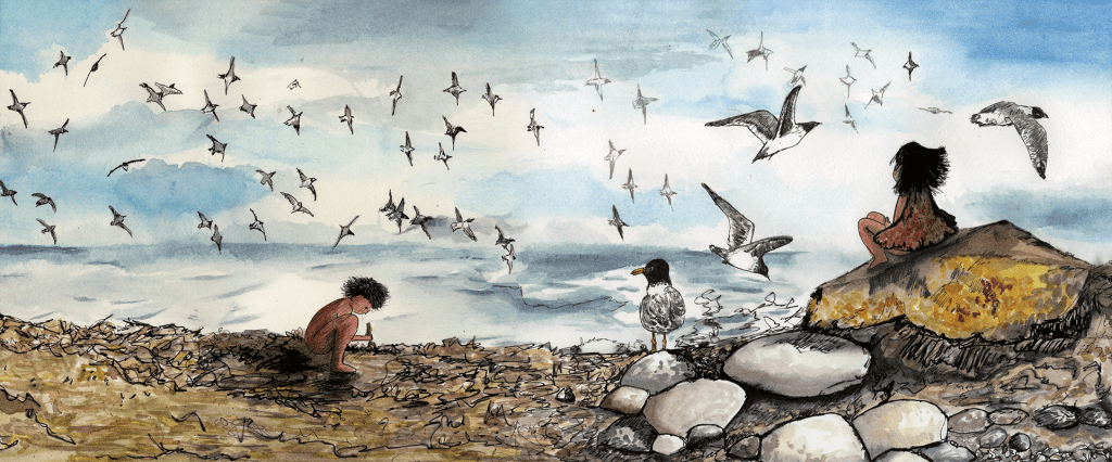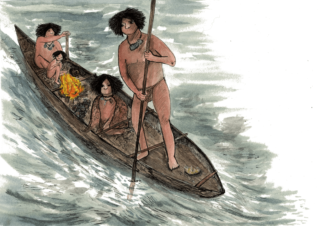 The author takes us to the territory of the southernmost indigenous people of the American continent: the Yahgan. This historical fiction book evokes a travelogue, with watercolor and ink illustrations. Its pages tell the story of a Yahgan girl in the period before the arrival of Europeans to this territory, with a narrative about the daily life, customs, and spirituality of her people. The story is divided into six moments that highlight significant milestones in family life and their culture.