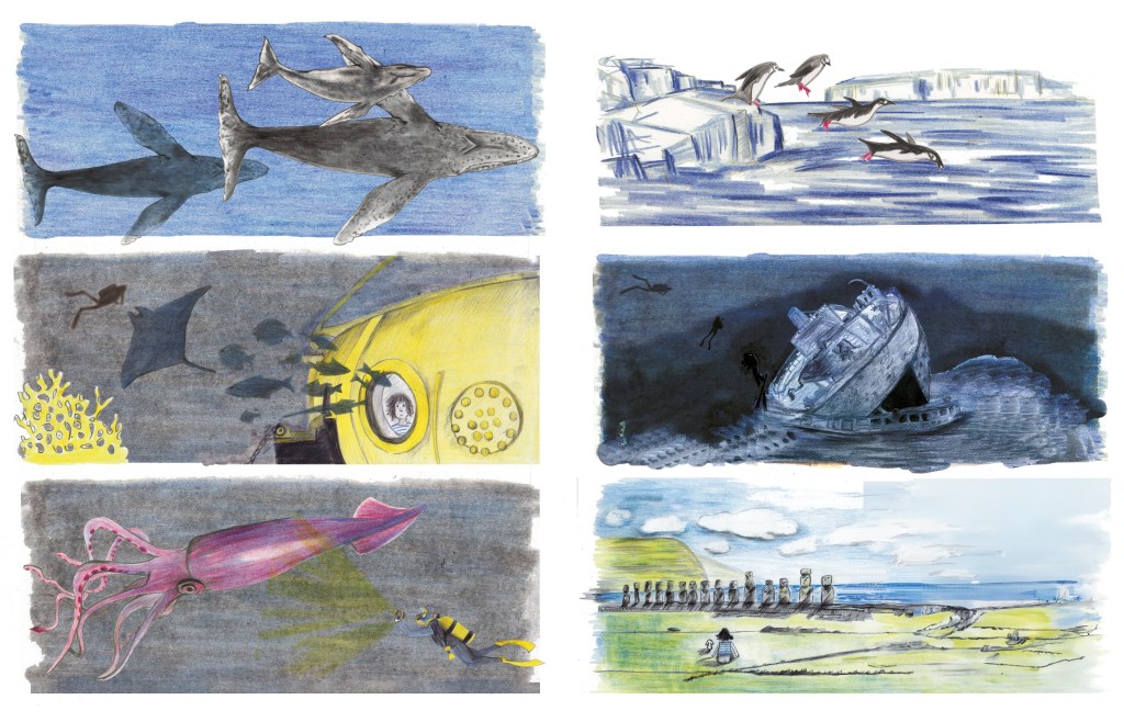 This picture book tells the story of Simone Melchoir, the true captain of the Calypso and Jacques Cousteau’s first love. She loved the sea long before she was born. Great-granddaughter, granddaughter, and daughter of sailors, she believed as a child that salt water ran through her veins instead of blood. At 8, she already knew that she would grow up to be the captain of a ship. A pioneer and daring in every sense, she was the first woman in the universe to scuba dive into the depths of the ocean.